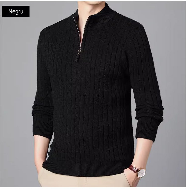 Pulover tricotat cu fermoar pe jumătate de gât înalt din cașmir cu fermoar